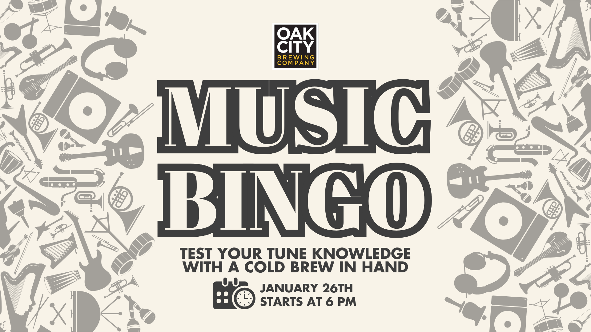 Join us for music bingo and test your tune knowledge with a cold beer in hand for a fun night at Oak City! Bring your friends, grab a pint, and get ready for a night full of great music and even better beer.